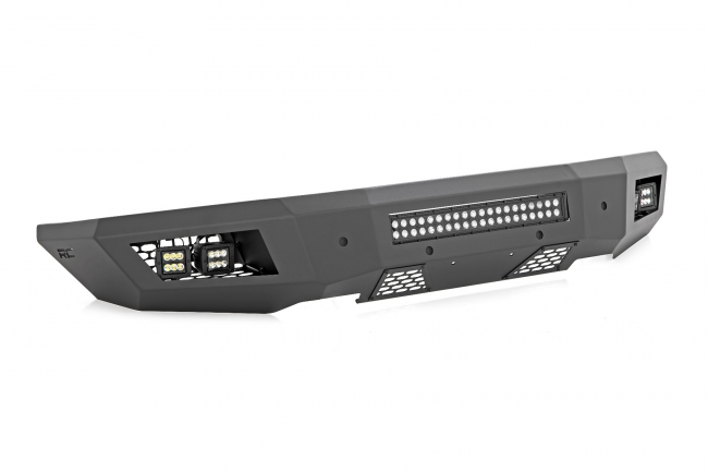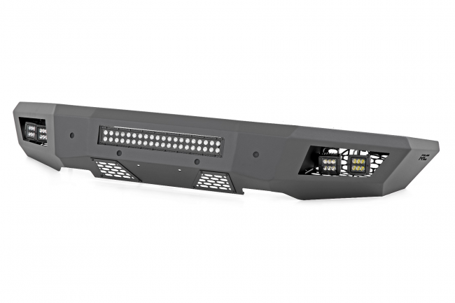 This incredible front bumper system is powder coated flat black and is ready to withstand the elements for a long lifespan of good looks. Rough Country's Rear LED Bumper is also easy to install with no cutting or drilling required! Best of all each bumper includes a 3-year warranty.