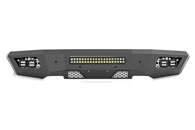 Rough Country's Front LED Bumper is made of a durable, all-steel construction that's ready to handle whatever you dish out. Each bumper features four Rough Country Black-Series 2 inch LED Cubes and a 20 inch LED Light Bar that offer over 15,000 lumens of combined lighting power.