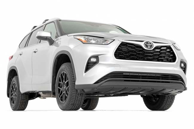 Rough Country's 2-inch Tacoma Supsension Kit makes it quick and easy to level the front of your 2020 Toyota Highlander, providing an aggressive stance and enough ride height to run up to 30-inch tires.At stock height, the Highlander sits higher in the rear than the front, giving the truck a "nose-down" look. This easy-to-install kit lifts and levels the front of you vehicle with the rear for a vastly improved look and additional ride height. This all enclusive kit contains a set of high-quality durable strut spacers, rear coil spring spacers and all necessary components to ensure the suspension geometry is accounted for!