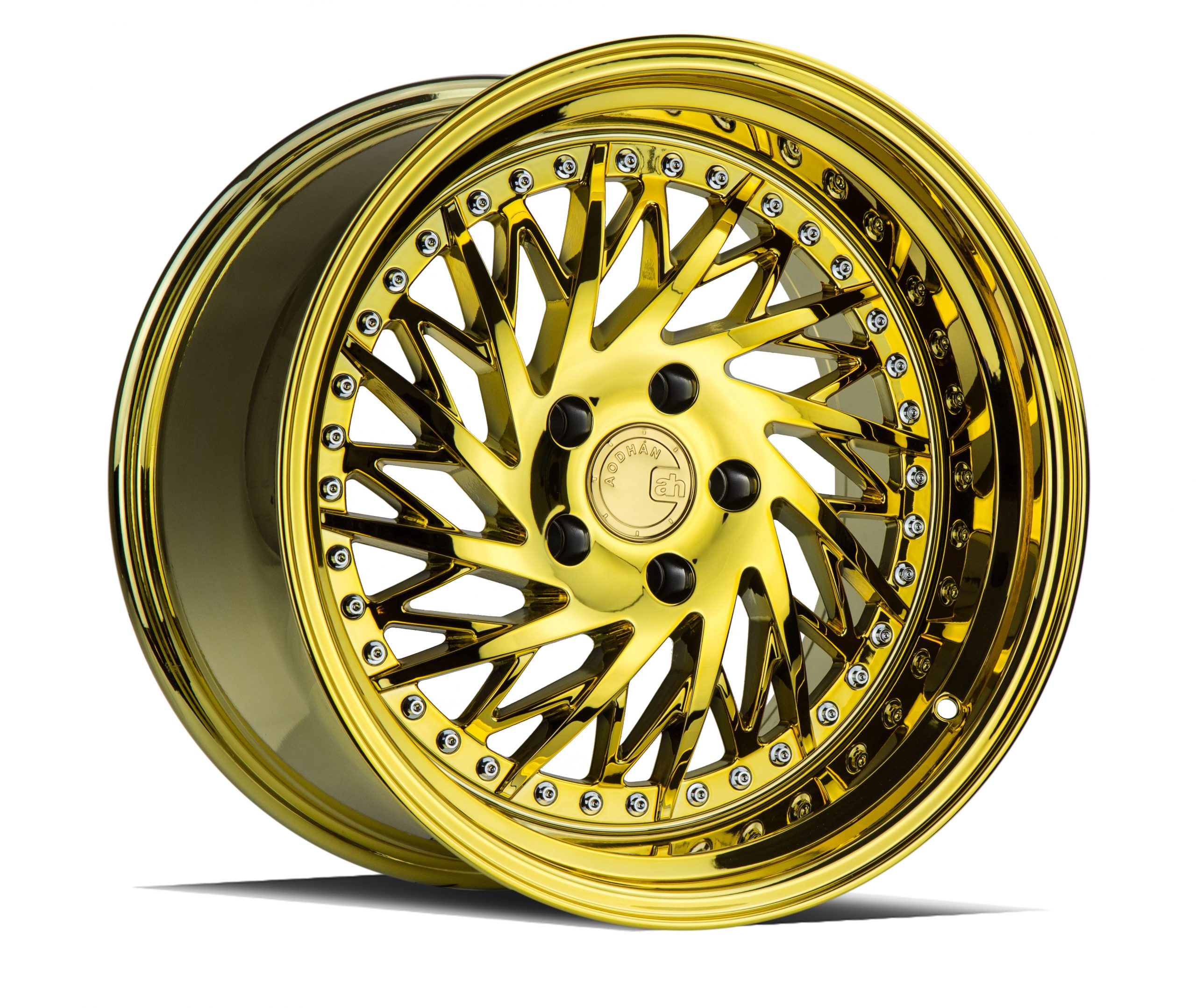 Crafted with precision, the Aodhan DS03 showcases an exquisite gold vacuum finish complemented by eye-catching chrome rivets. Each detail is meticulously crafted, reflecting superior build quality and an attention to detail that sets this wheel apart in the crowded automotive landscape. The 18-inch diameter and 10.5-inch width provide an assertive, aggressive stance while maintaining optimal balance and road contact for enhanced handling and control.