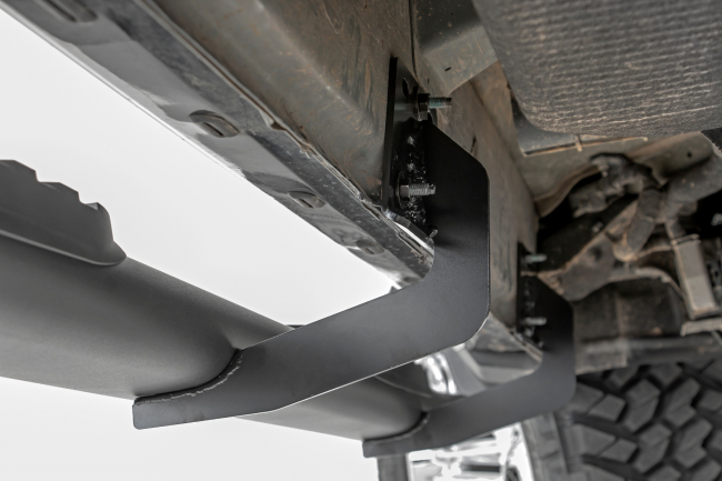 Durable, steel side steps Classic, OEM design Wide 4.5-inch stepping area No-drill installation 30-degree angled end design Easy installation Looks great on lifted vehicles 5-year limited warranty