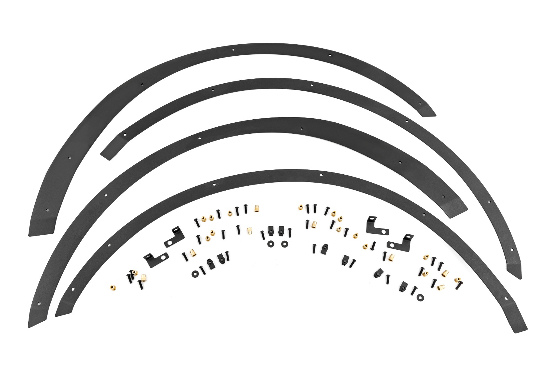 Maximum travel and clearance. Gives a more finished and complete look vs simply removing fenders. Made from durable 1/8-inch plate steel. Laser-cut for a precise fit. Design allows for quick install and removal without having to pull back inner fender. Design allows for use of stock flare when removed. Designed to follow body contour. Durable black powder coat finish.