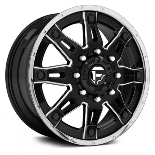 Best Prices on Fuel Dually Hostage II D232 Front Black and Milled with Chrome Lip 22x8.25 (+127) 8x165.1 wheels from ExtremeWheels.com ***We will meet or beat ANY price on all Fuel Offroad wheels***