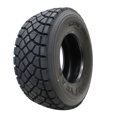 Engineered to tackle severe service applications wear durability and dependability are key factors, G278 MSD all terrain tires from Goodyear are heavy duty equipment with reinforced tread compounds and biting edges for improved performance. Severe service reinforced rubber resists damages from chips, punctures and abrasions. Criss-cross treads force water away from contact surfaces for improved wet traction and optimized tread designs reduce road noise for a quieter ride.