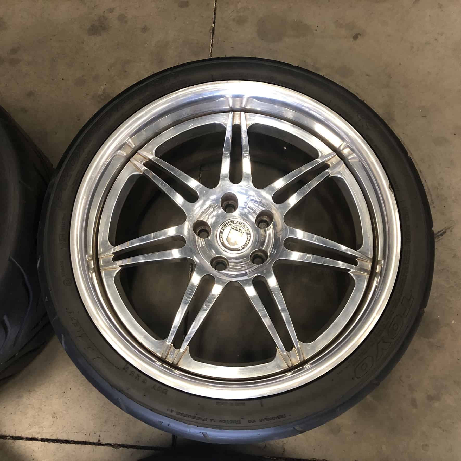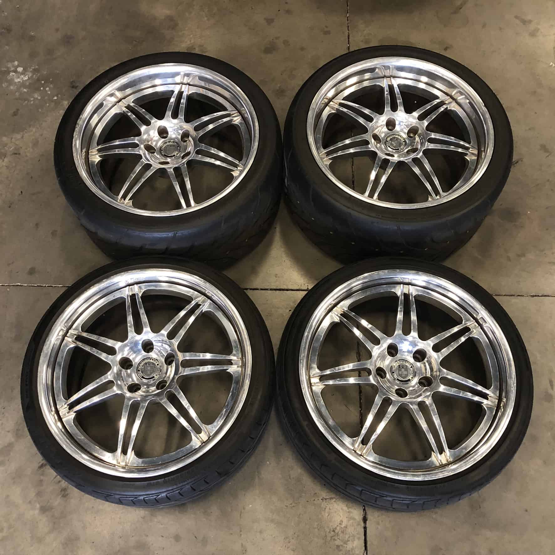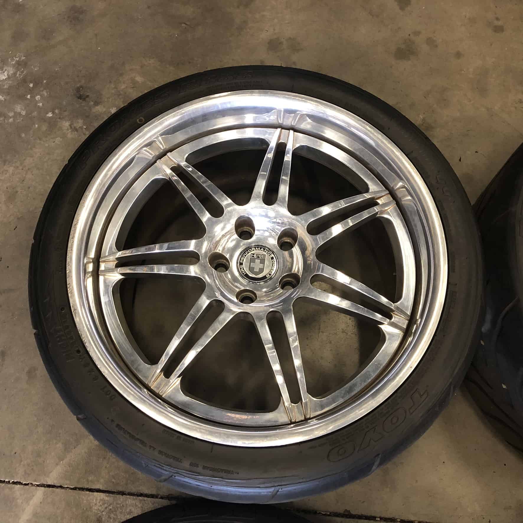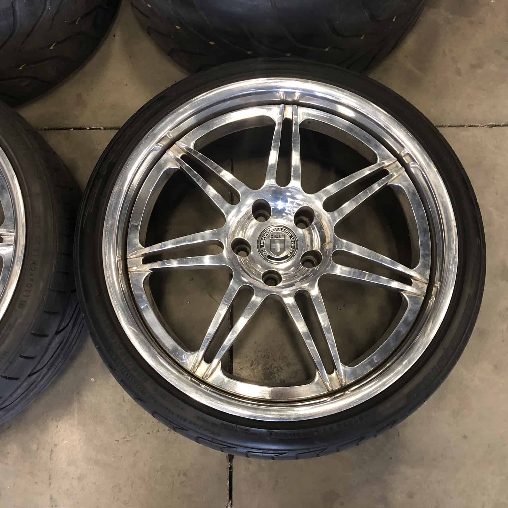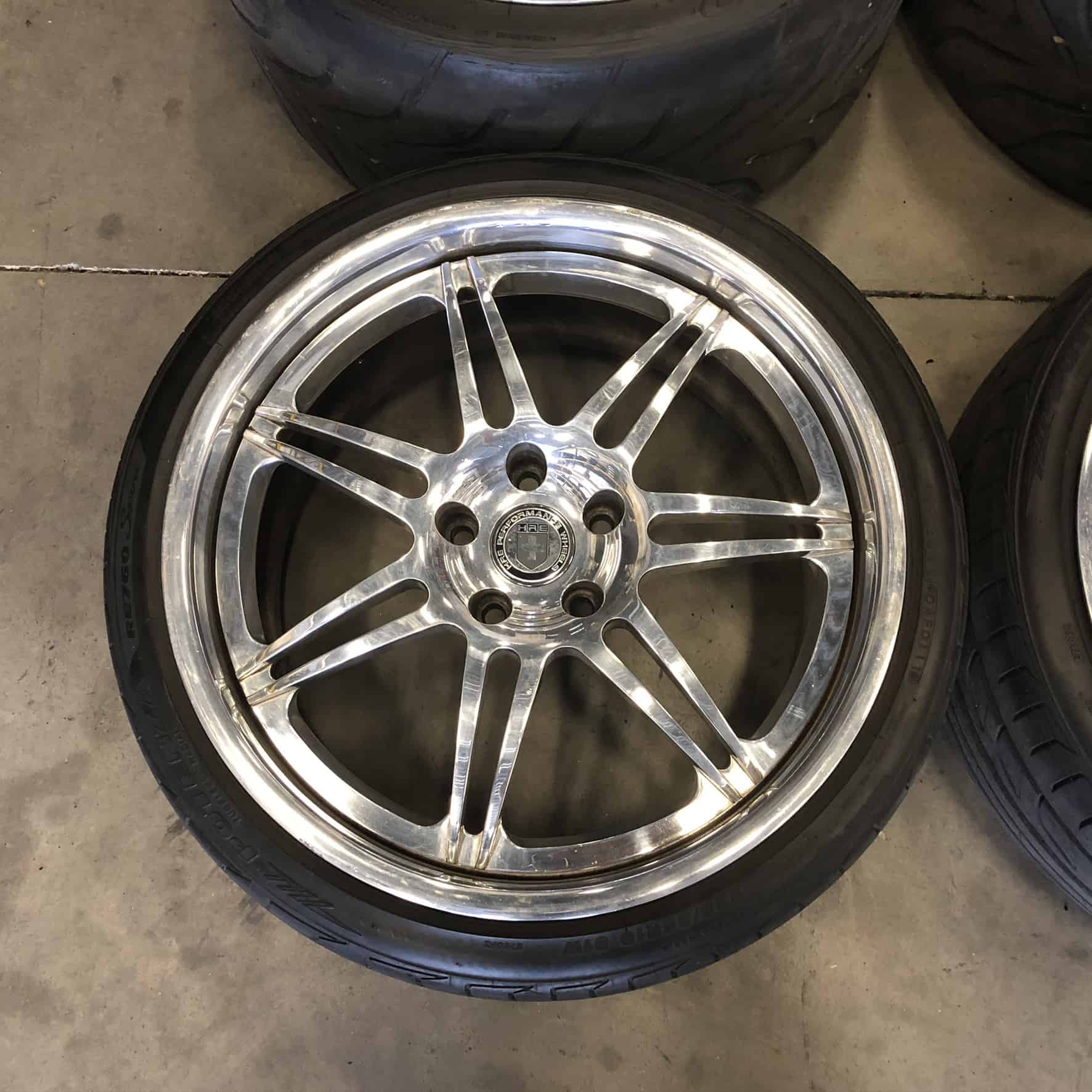 Set of four HRE 841R Three Piece Polished Wheels and Tires