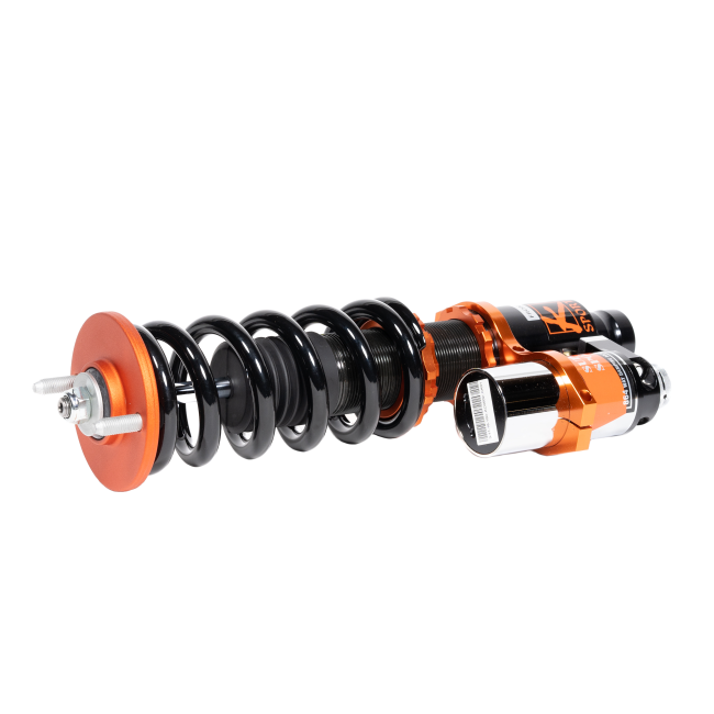 Ksport’s Kontrol Plus 2 Way coilover System provides the ultimate in adjustability for enthusiasts and professionals alike, who are wishing to have the maximum in performance and durability. With years of engineering, testing and development, the Kontrol Plus 2 Way coilover System has been perfected in virtually every facet of motorsports, ranging from drifting to time attack or circuit driving. The uncompromising range of adjustability on the Kontrol Plus 2 Way coilover System makes it possible to win at the track yet drive daily on the street as well. The key component to the Kontrol Plus 2 Way coilover System is its utilization of remote reservoirs that provide separate adjustments for rebound and compression, as well as nitrogen gas pressure. With over 864 possible settings provided by each Kontrol Plus 2 Way coilover System, it is possible to leave no stone unturned in the quest for ultimate performance from your vehicle’s suspension system. In addition to adjustability, the added oil capacity provided by the remote reservoirs increase the system’s ability to dissipate heat, which leads to improved performance over long periods such as endurance or tarmac racing, in addition to consistent performance throughout long heat cycles. These features, paired with 55mm monotube shocks, ensure maximum durability and consistent performance. A variety of external hardware components are available on the Ksport Kontrol Plus 2 Way coilover System to completely customize the system to your vehicle. When fitting this kit to your vehicle, upper mounts are available in rubber form, pillowball or Ksport’s award winning advanced pillowball mounts that offer camber and caster adjustment. Each Ksport Kontrol Plus 2 Way coilover System has been dyno tested individually.