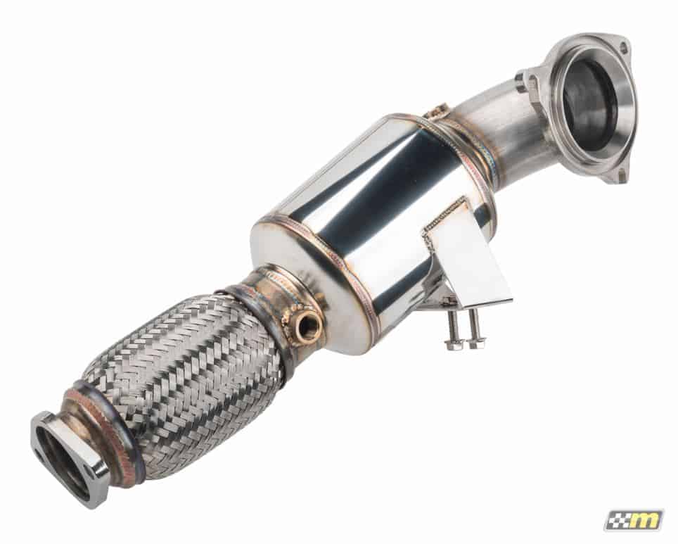 The mountune Sport Cat Down Pipe has been engineered to reduce exhaust back-pressure at the turbocharger allowing faster response and additional power. Features include a large diameter (5”) motorsport type, 200 cell count metal substrate honeycomb catalyst to ensure effective, ultra high flow performance in extreme environments. Large catalyst cross section means increased exhaust flow compared to other smaller catalyst equipped down pipes on the market. Constructed of 3” primary AISI 304 Stainless Steel mandrel bent tubing with a CNC machined flange that allows easy installation. Additionally, robust factory type mounting brackets and hangers are utilized to maintain perfect alignment and OE like fitment. We also incorporate a 6” stainless steel Flex Section to help absorb shock, prevent OE hanger failure, and a reduced chance of false knock signals causing engine power reduction.