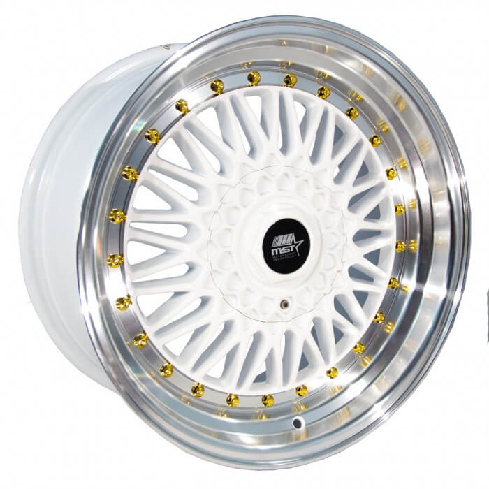 Buy MST Tuner MT13 White and Machined Lip with Gold Rivets from ExtremeWheels.com With over 30 years of experience, MST Wheels is founded with the basic principle of providing the car enthusiasts around the world with top quality wheels at affordable prices. Here at MST Wheels, we are car enthusiasts too, and that is why we understand the desires and needs of the everyday consumer just like you. We take pride in our collection and top notch service.