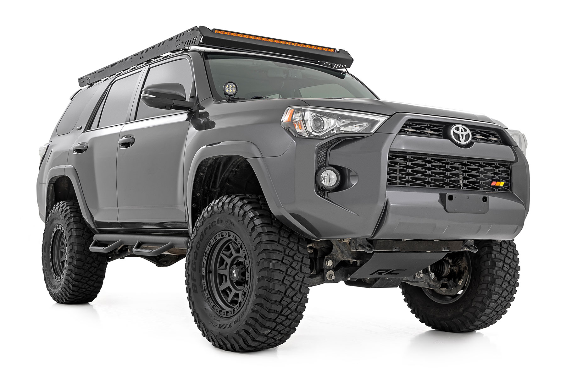 Climbing into your SUV should never feel like a workout. With Rough Country's all-new bolt-on Nerf Steps, getting in and out is a breeze. Experience effortless access and elevate your SUV with a sleek, durable upgrade.Enhanced Undercarriage Protection: Say goodbye to road debris, rocks, and obstacles that could damage your undercarriage. Our Nerf Steps act as a shield, protecting your vehicle from the harsh elements below.Integrated Stone Guards for Added Protection: Keep your Toyota 4Runner looking like new. The built-in stone guards effectively deflect kicked-up rocks and debris, preserving your vehicle's paint job from potential damage.Sleek, Streamlined Design: No bulky bars here, just a clean, high and tight profile that follows your cab's contours. These Nerf Steps provide a polished, streamlined look that enhances your SUV's rugged yet refined style.Built to Endure: Crafted from .084 wall, corrosion-resistant tubing, these Nerf Steps are engineered to withstand anything the road or trail throws at them. From muddy trails to harsh environments, they'll handle it all while staying tough and reliable.Quick and Easy Installation: No drilling required, just bolt them on and enjoy a hassle-free installation. Spend less time working and more time exploring with this straightforward, user-friendly design.Limited Lifetime Warranty: Backed by Rough Country's Limited Lifetime Warranty, these Nerf Steps provide lasting durability and peace of mind for years to come.Step up your SUV's style and protection with Rough Country Nerf Steps. Easy installation, superior defense, and a sleek, high-end design, everything you need to take your vehicle to the next level.