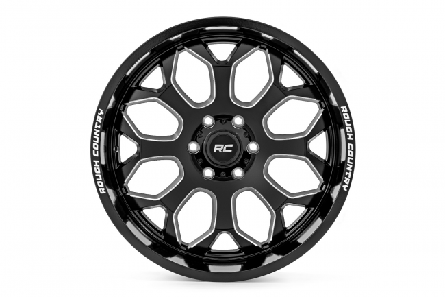Gloss Black w/Milled Accents finish 8-spoke design Offers a wide 4" lip. Single-piece aluminum construction delivers a super strong, super light wheel Includes a Rough Country black center cap Backed by a 1-year finish and Limited Lifetime Structural Warranty