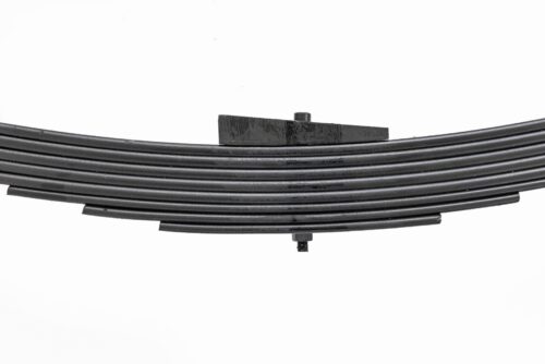 Added Lift Height and Ride Comfort. Take your suspension kit to the next level with Rough Country's Replacement Leaf Springs. Constructed from high-quality materials and designed specifically for the weight of your vehicle. This enhanced replacement spring will provide a factory-like feel while retaining your suspension lift height. Durable and Off-Road Ready. Rough Country's Replacement Leaf Springs are designed to tackle any terrain that they are faced with. Featuring a multi-leaf design and spring pads this reduces the friction and maximizes comfort. Each leaf pack utilizes tapered leaves for improved flexibility at their ends. Installation. Rough Country's Replacement Leaf Springs offer a 100% bolt-on installation estimated to take approximately 1-2 hours depending on vehicle condition. Simply remove the pre-existing leaf spring and use the stock hardware to equip your vehicle with this high-quality replacement. Lifetime Replacement Warranty. Rough Country's Replacement Leaf is backed with a 5-year replacement warranty towards manufacturer defects. As such, the product is protected from structural and workmanship damage after the date of purchase. With our industry-leading warranty give yourself peace of mind when using Rough Country's Suspension products!