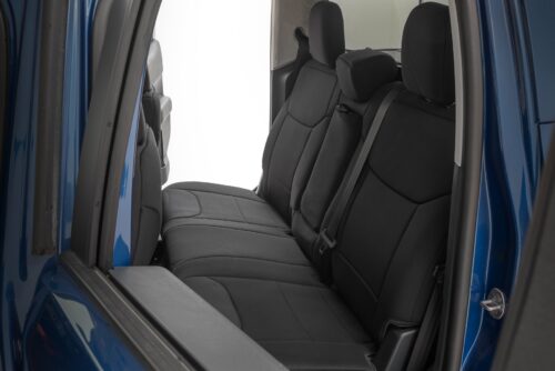 Want to protect your seats or are your seats showing signs of wear and tear from daily use? Say goodbye to unsightly stains and deterioration with Rough Country's Neoprene Seat Covers - the ultimate solution for preserving your vehicle's interior.Snug Fit for Optimal Protection: Our seat covers are tailored to fit your seats perfectly, providing a protective barrier against spills, scratches, and everyday wear and tear.Factory-Spec Construction: Engineered to meet factory specifications, our covers blend seamlessly with your vehicle's interior, giving it a fresh, new look without compromising on quality or style.Four-Layer Defense: With a four-layer construction featuring foam padding and a durable polyester shell, our seat covers offer unmatched protection and longevity, ensuring your seats stay looking new for years to come.Breathable and Water-Resistant: The neoprene layer not only provides breathability for added comfort but also boasts water-resistant properties, safeguarding your seats from spills and stains.Complete Coverage: Our covers come with full protection for your front seats, including headrest covers where applicable, as well as rear covers to shield your back seats from children and pet-related mishaps.Peace of Mind Warranty: Rest easy knowing your purchase is backed by our two-year warranty, giving you confidence in the durability and reliability of our product.Don't let worn-out seats diminish your driving experience. Upgrade to Neoprene Seat Covers today and enjoy a fresh, stylish interior that's protected against the rigors of daily life on the road.