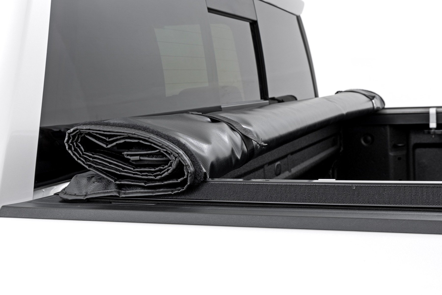 Superior Protection. Rough Country's Soft Roll-Up Bed Cover keeps the contents of your bed clean and dry while allowing maximum bed access when you need it. Made with a durable, leather-grain fabric, this easy-to-install bed cover is designed to withstand the elements, featuring tight front and rear seals to keep water, dust, and dirt at bay.