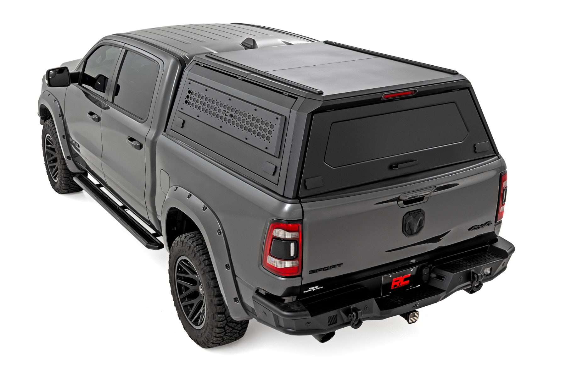 When it comes to your Ram 1500, you need a topper that offers more than just basic protection. Rough Country's Bed Cap is built for the serious enthusiast who values convenience, security, and versatility. Whether you're hauling gear or for your next adventure or keeping your possessions secure, this topper is your perfect companion.Enhanced Accessibility: With full-opening gullwing doors and easy access from both the rear and sides, loading and unloading becomes effortless, saving you time and frustration.Customizable Storage Solutions: The modular setup allows you to adapt the topper to your unique needs with exterior Molle panels, optional interior shelves, and a optional driver-side storage box. Keep everything in its place so you're ready to tackle any task.Durability Meets Safety: With tough, lockable panels and a third brake light, your gear stays secure and you stay visible on the road-no matter what conditions you're driving in.Lighting When You Need It: The integrated LED strip provides brilliant illumination inside your bed, perfect for those late-night tasks or campsite setups when the sun goes down.Rugged, Ready Design: Built for lasting durability, this robust stainless steel frame is coated with a UV-resistant powder finish, ensuring it withstands harsh weather conditions without fading or rusting. High-quality rubber seals provide a tight, weather-resistant fit, keeping your cargo safe and dry, no matter the elements. Heavy-duty latch and protective covers offer enhanced security, keeping your panels firmly closed even in the most rugged conditions.This topper isnΓÇÖt just about adding storage space-itΓÇÖs about upgrading your truck with a feature-packed, durable solution that works as hard as you do. Perfect for outdoor enthusiasts, contractors, or anyone who needs an upgrade in both form and function.