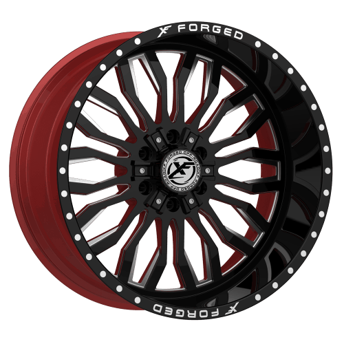XF Forged Off-Road custom aftermarket offroad wheels are precision engineered, using advanced materials and revolutionary manufacturing processes. Make your Truck or SUV stand apart. Choosing just the right design, finish and size from our collection. Check out the XF Offroad Forged XFX-305 Gloss Black and Milled with Red Inner 24x14 (-76) 8x165.1/8x170 at Extreme Wheels.